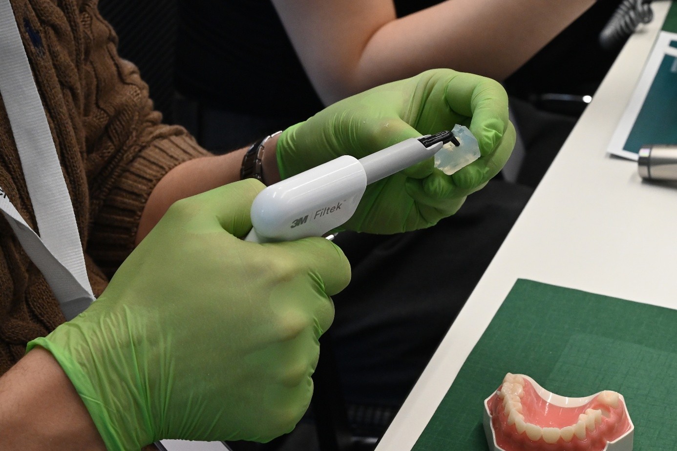 In a combined lecture and hands-on training, Dr. Maciej Zarow focused on a direct restorative approach to increasing the vertical dimension of occlusion (VDO): the composite ball technique. It is perfectly suitable for worn teeth with intact proximal contact points. Prior to impression taking, a composite ball is bonded to the buccal wall (1.5 mm above the gingival margin) of each posterior tooth that will be restored. Then, an impression and bite registration are taken, and a functional wax-up and transparent silicon index with an integrated occlusal chimney (useful to reduce interproximal excess) produced in the laboratory. The composite ball serves as a reference point for correct positioning of the index, which is filled with previously heated composite material and placed on the pre-treated tooth. The composite is pre-polymerized through the index, the index removed, and excess carefully removed before the final light-curing procedure.