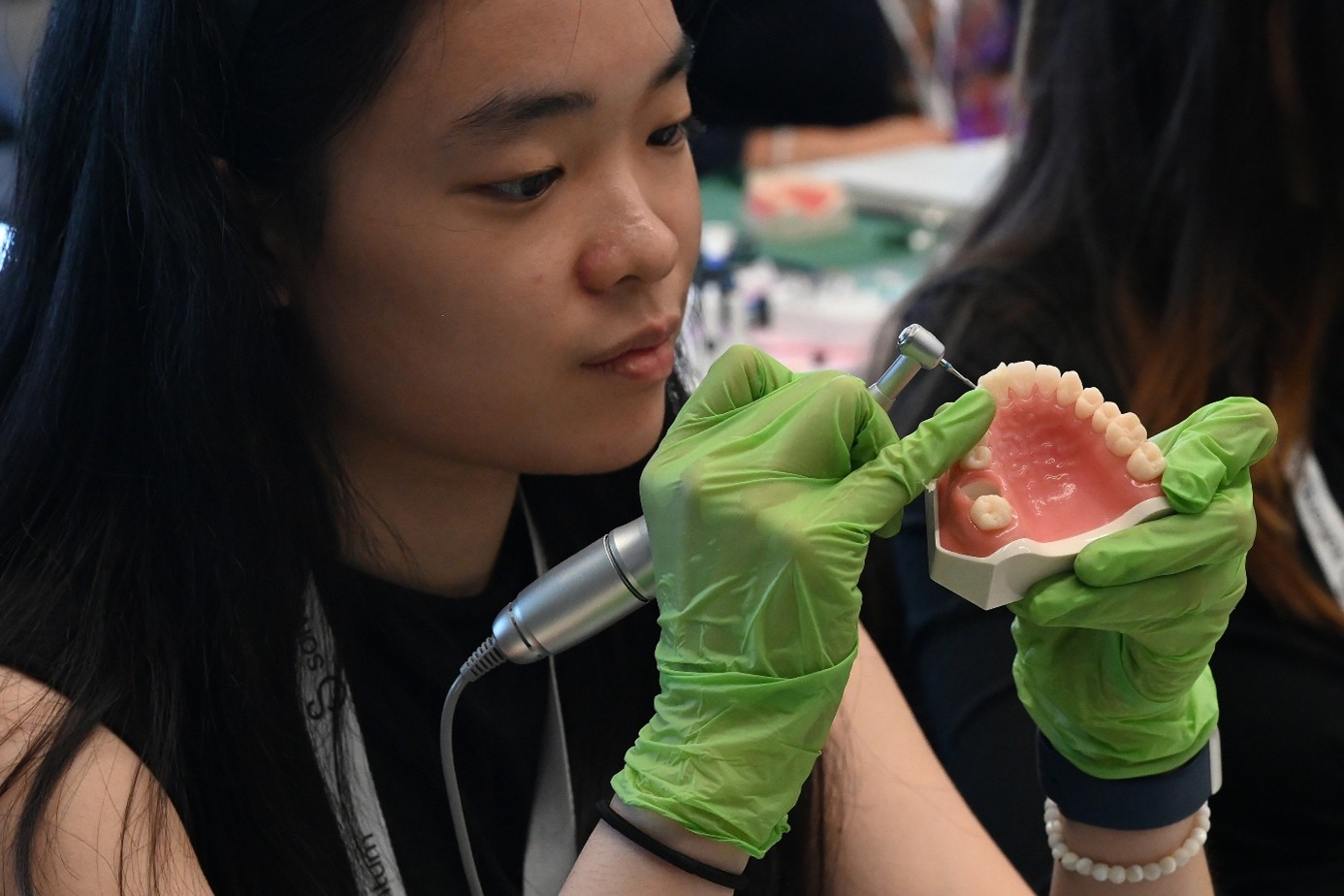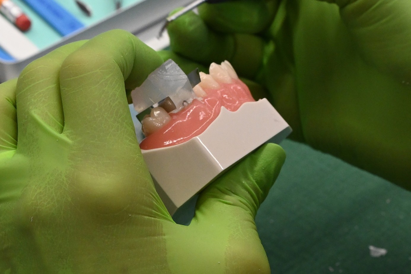 Participant rebuilding the anatomical shape of the tooth by following the inclination of the remaining cusp parts with the instrument.