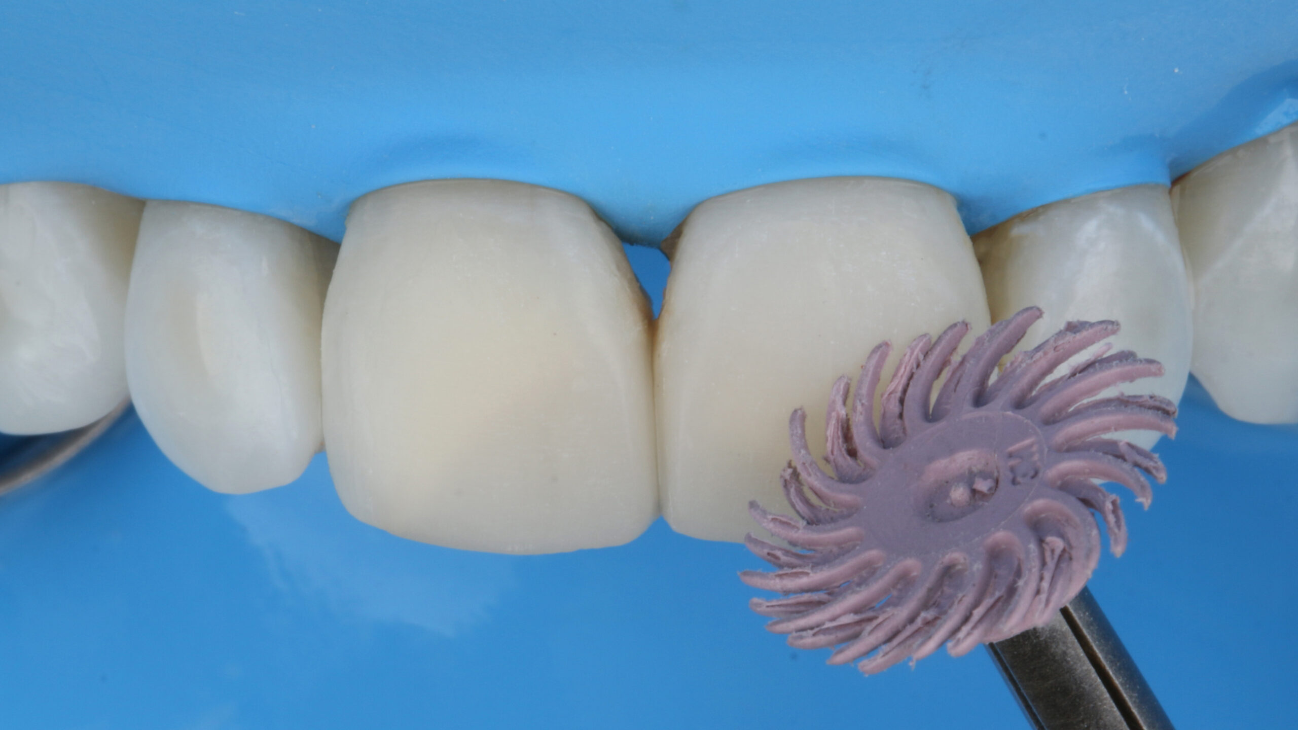 Finishing with 3M™ Sof-Lex™ Pop-On discs medium and polishing with 3M™ Sof-Lex™ Spiral discs - beige and pink, finalizing with a felt disc.