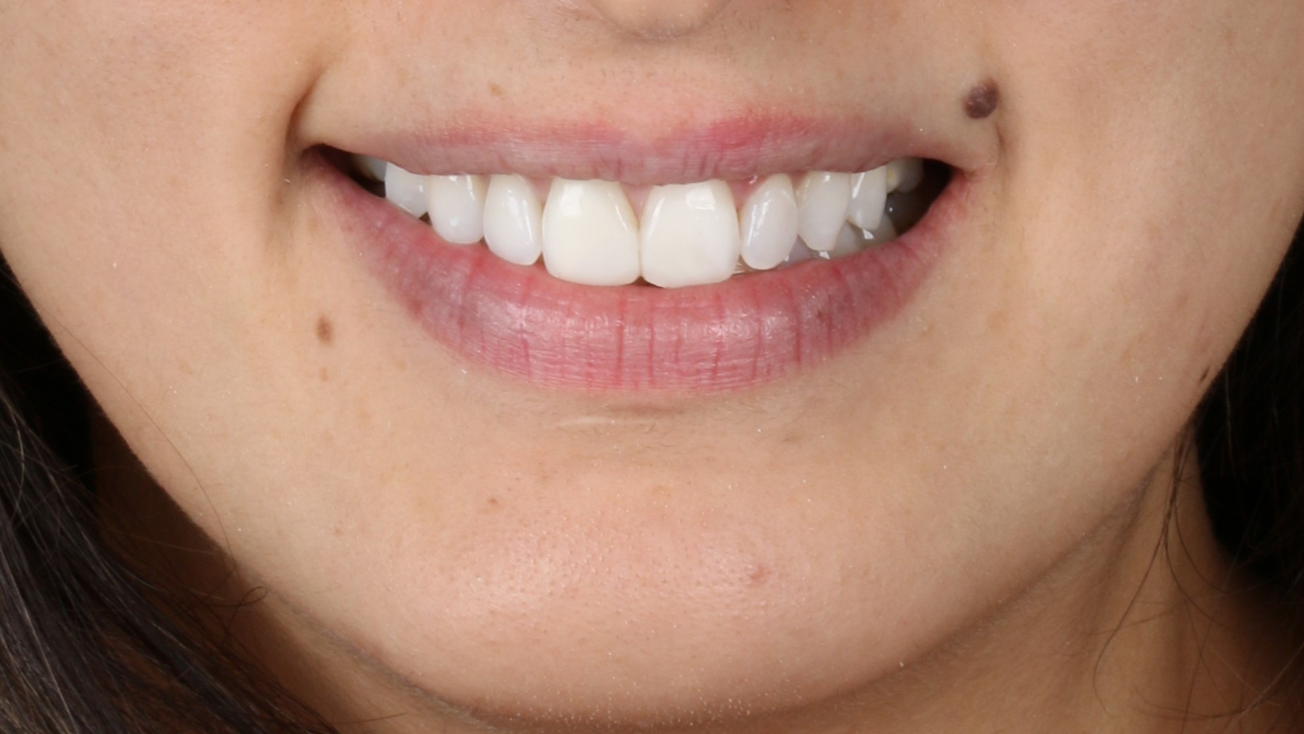 Final clinical case after 1 week (intra-oral photo and smile).