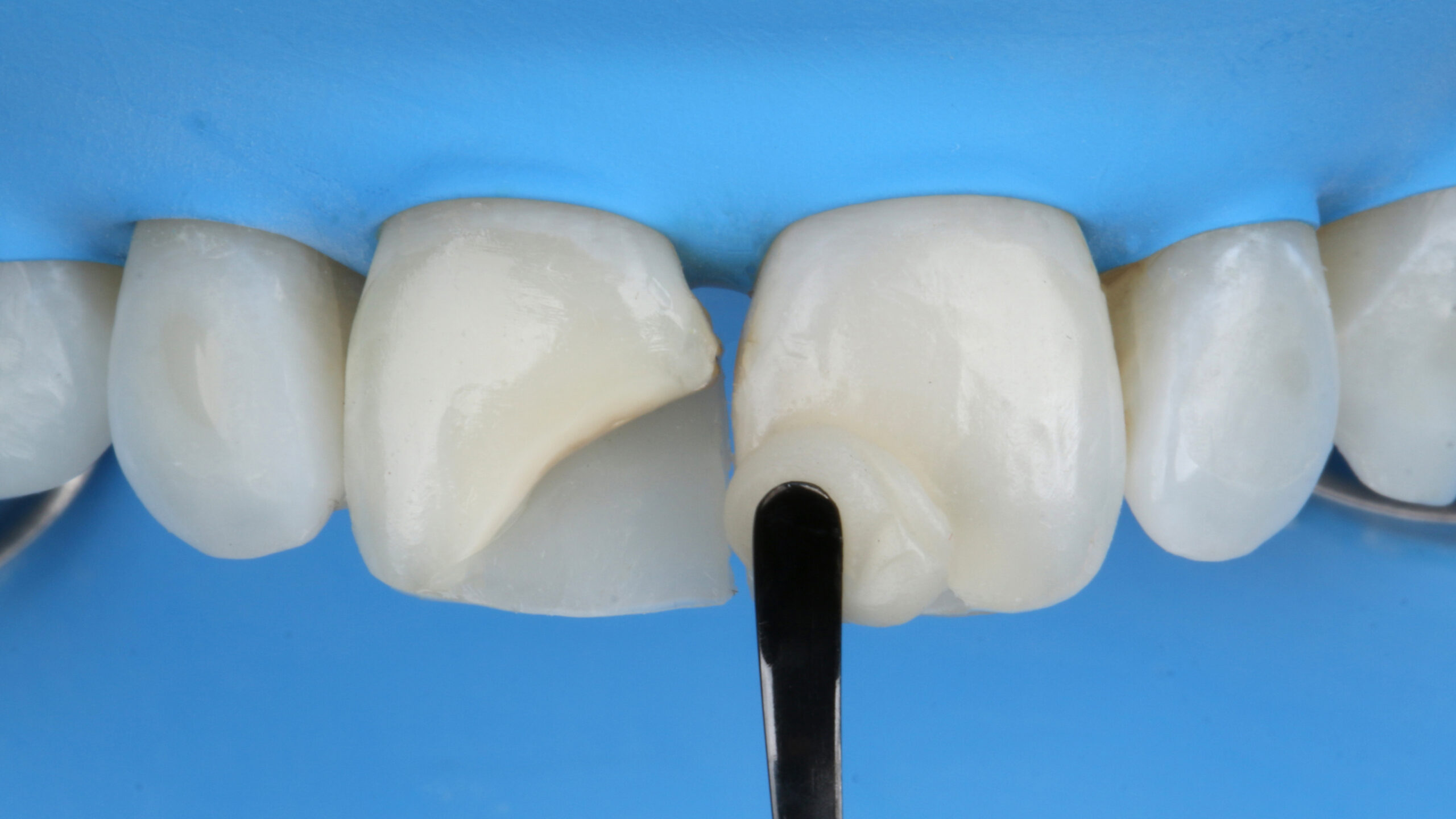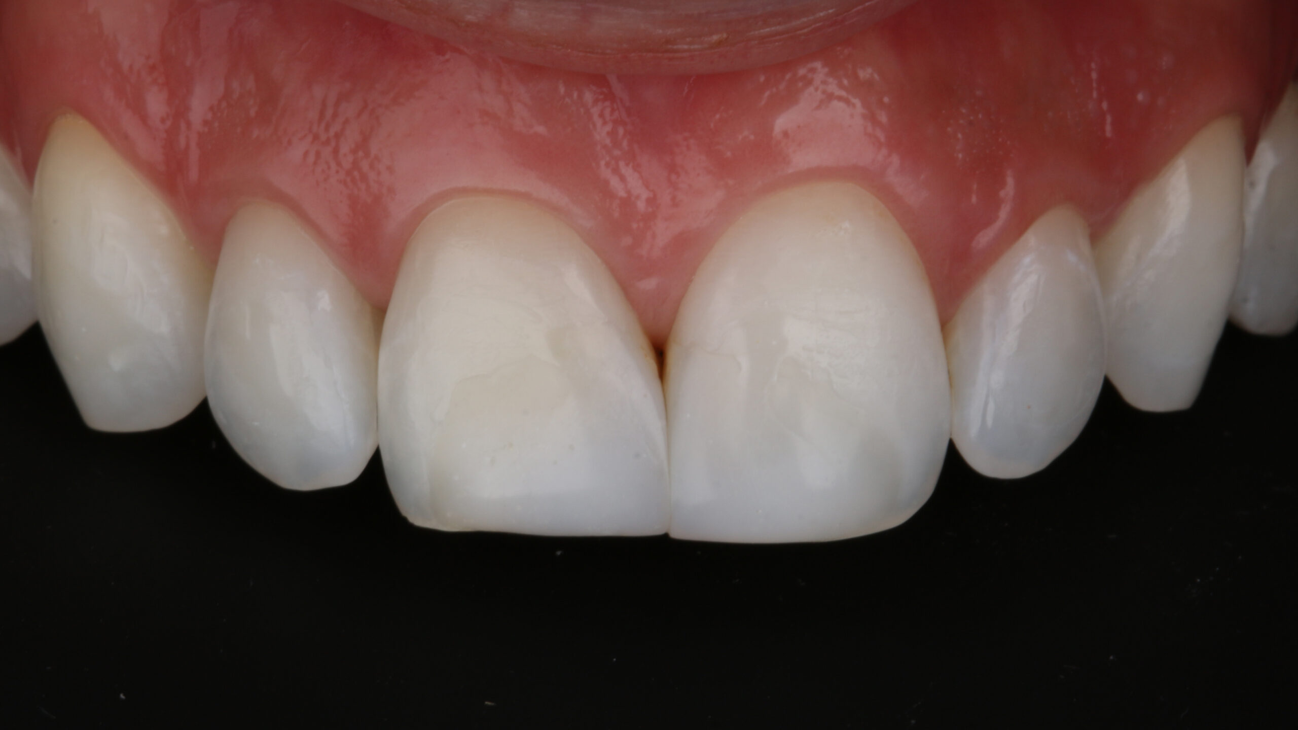 The biggest challenge was to carry out a Class IV restoration with just a single shade and achieve a satisfactory level of opacity, in addition to efficiently hiding the joint line (bevel) of the restorations.