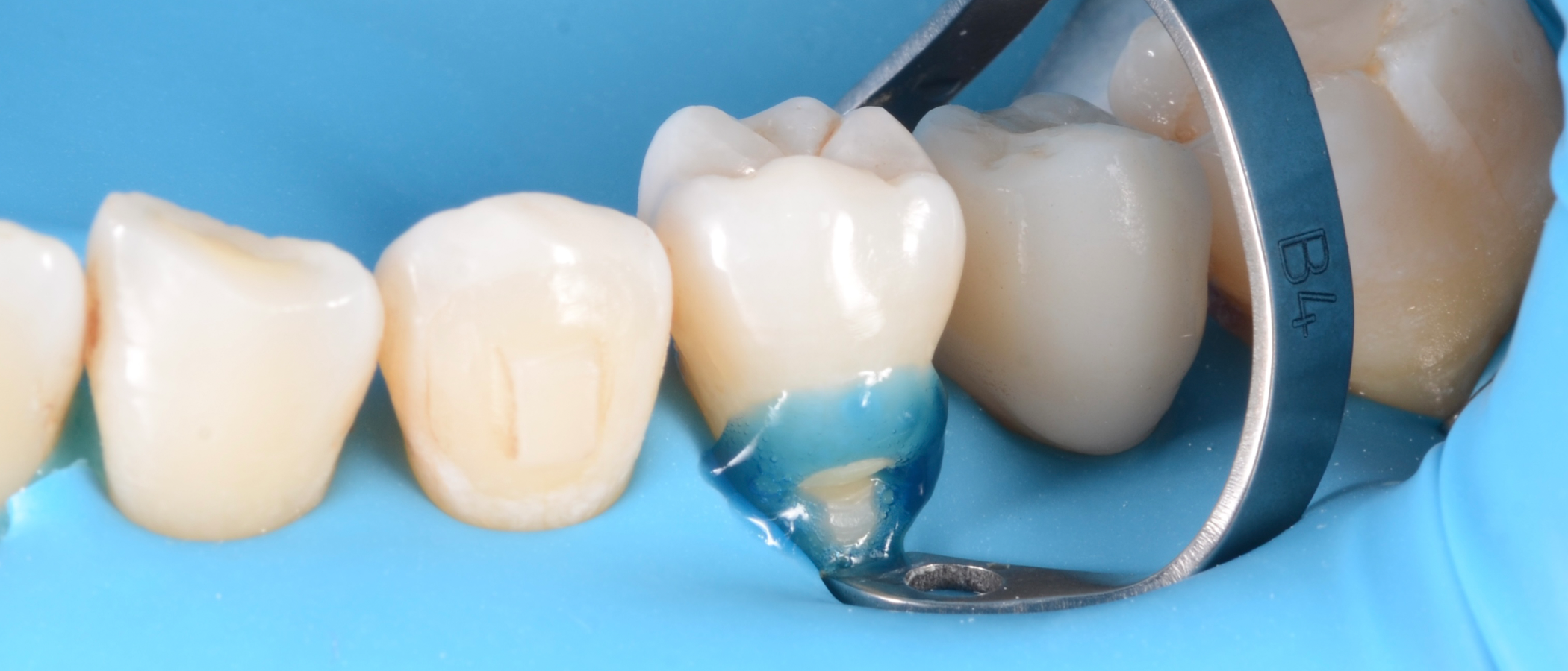 Contour before finishing and polishing. Note the smooth transition between the tooth and the restoration