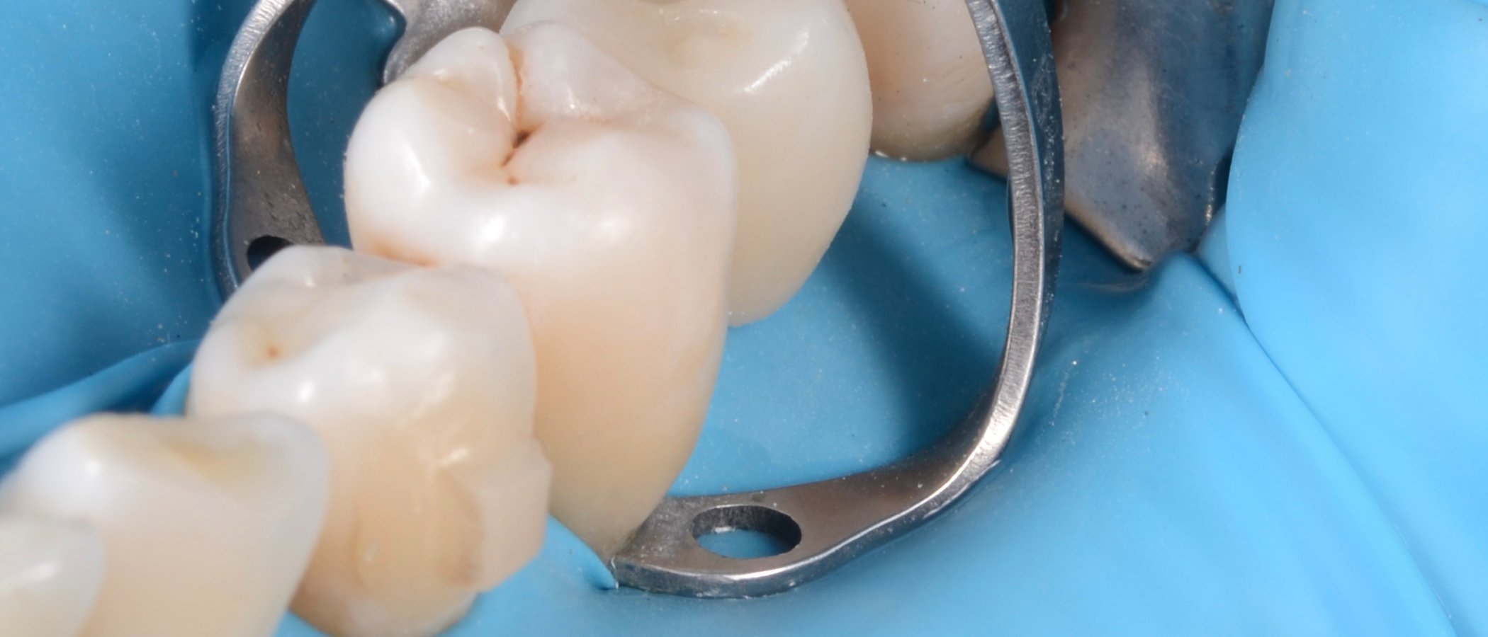 Result after removal of rubber dam. Note the smooth color blend between the restoration and the natural tooth