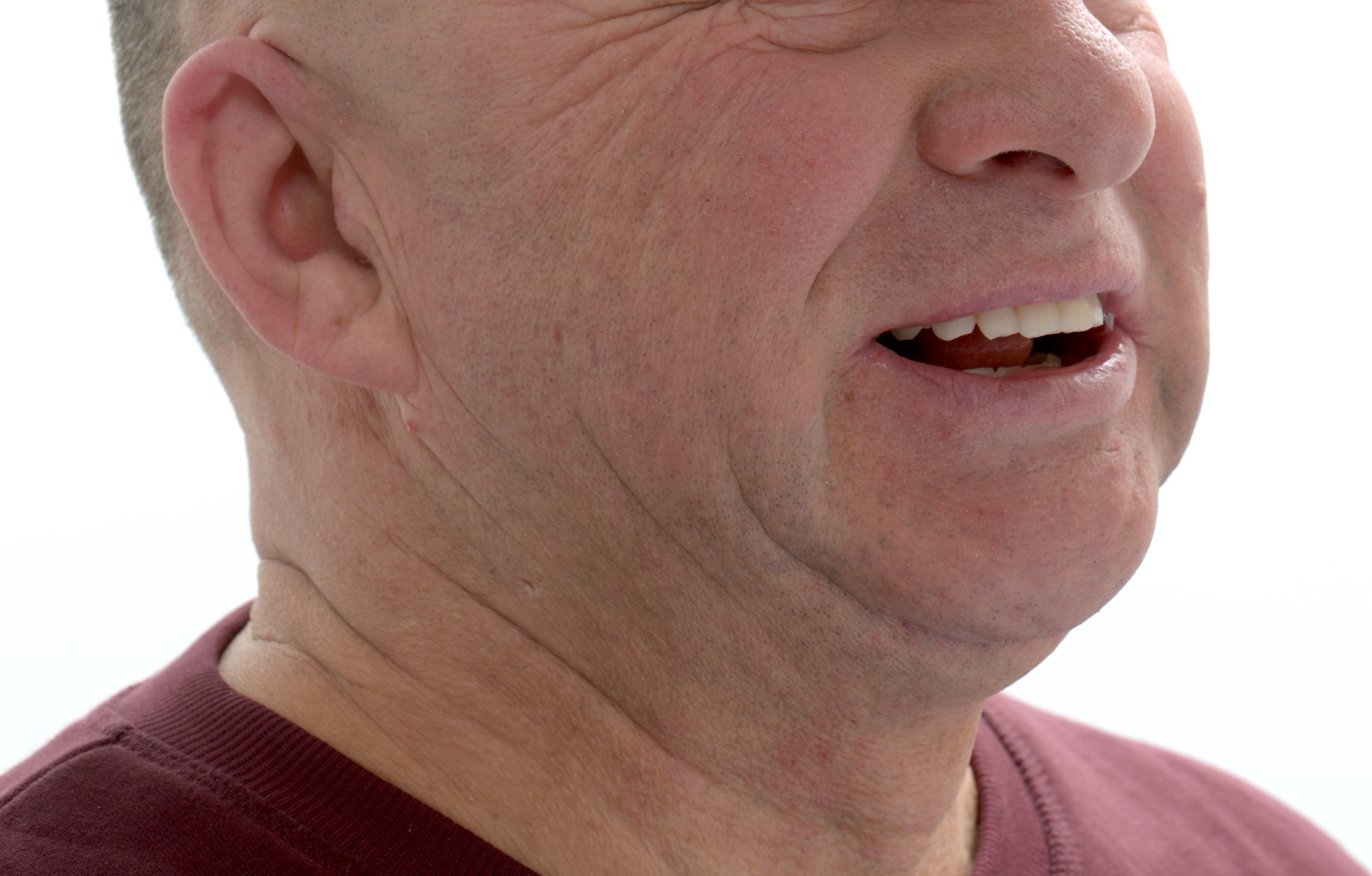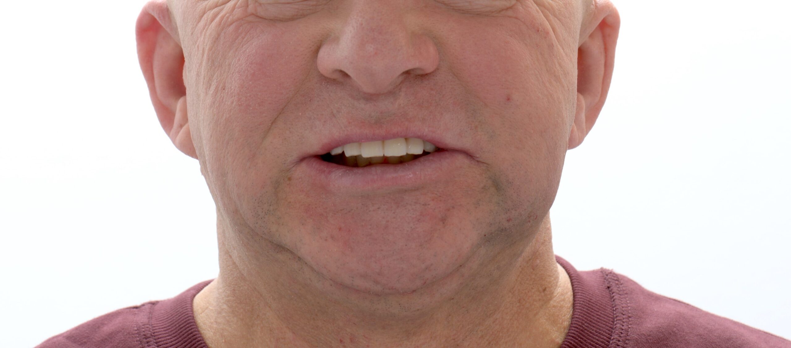 Extraoral view of the patient with the final maxillary and mandibular removable dentures.