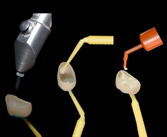 Pre-treatment with HF, rinse with water, 3M™ Scotchbond™ Universal Plus Adhesive and 3M™ RelyX™ Universal Resin Cement application.