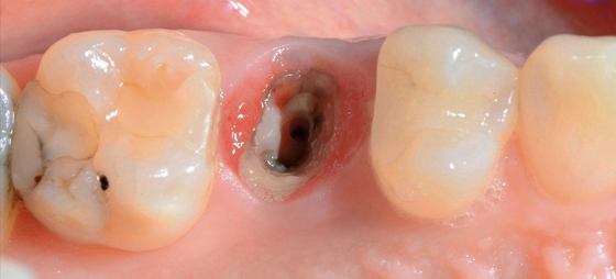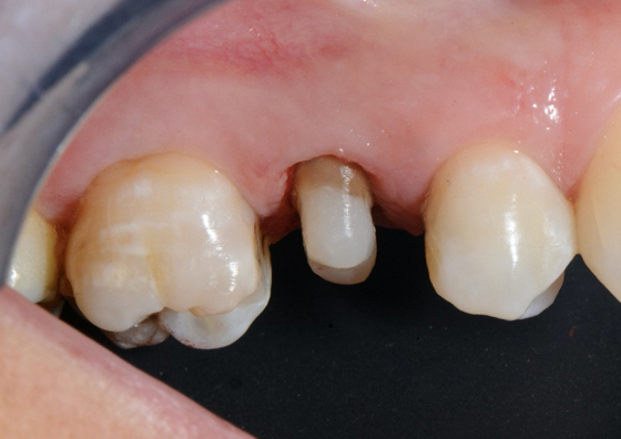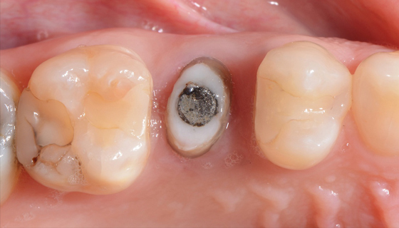 The 47-year-old female patient presented with a heavily destroyed tooth 15 and the strong wish to keep the tooth by any means. Key step of the planned approach was the magnetic extrusion of the root after root canal treatment. After core build-up with a post, a full-contour zirconia crown was placed. 3M™ RelyX™ Universal Resin Cement was used for self-adhesive cementation of both the 3M™ RelyX™ Fiber Post 3D and the 3M™ Lava™ Esthetic Full-Contour Zirconia Crown. 3M™ Scotchbond™ Universal Plus Adhesive and 3M™ Filtek™ One Bulk Fill Restorative were employed for the core build-up.