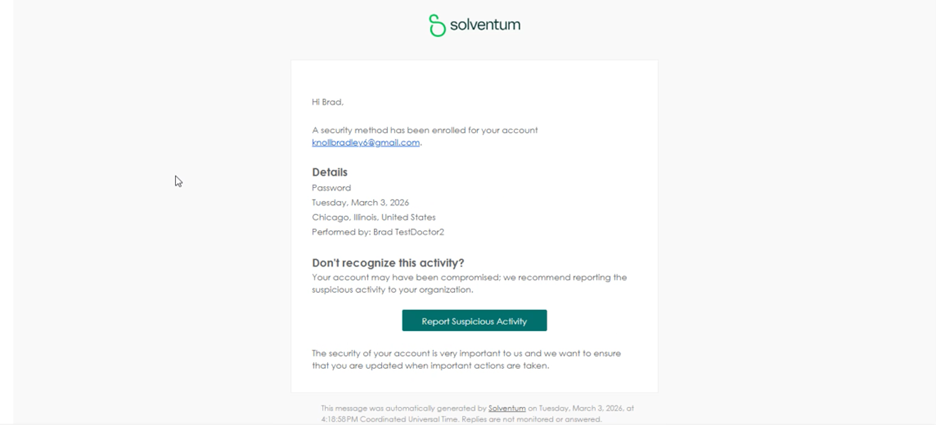 With this update, email will become the only supported login identifier. Users signing in with an email address will be able to continue using their existing credentials. Access to the email address used as a credential is required to reset a forgotten password. If a user does not have access to their email address, they should contact Solventum clinician support.