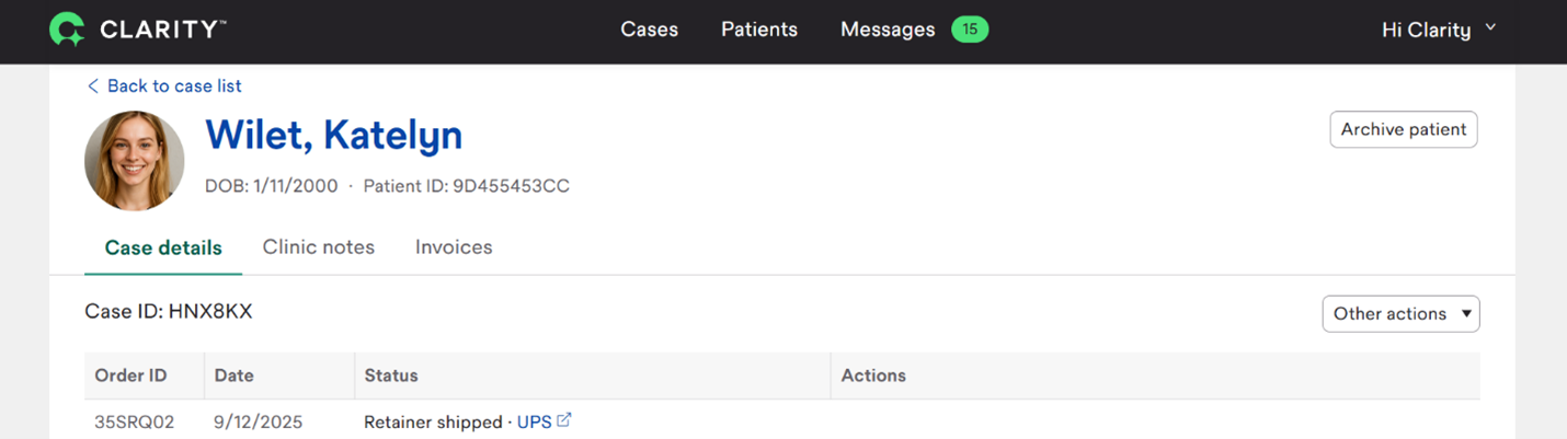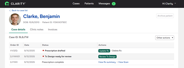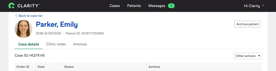 As of April, we enabled the linking of Grin and Clarity Portal accounts and patients, and the ability to directly upload Grin scans into the Clarity Portal patient record. With the October release, patients associated with a linked Grin account may be associated from either the case list or the case details page.