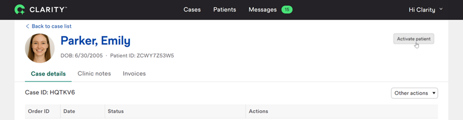 Once archived, a patient with an active case can be returned to active status by clicking “Activate patient” from the case details page.