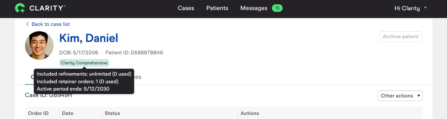 With the October release, the case details header will be enhanced to provide more information and to improve page usability. Case type and treatment package information will be added, and accounts that have linked to Grin can pair patients or navigate to the Grin page from the page header.