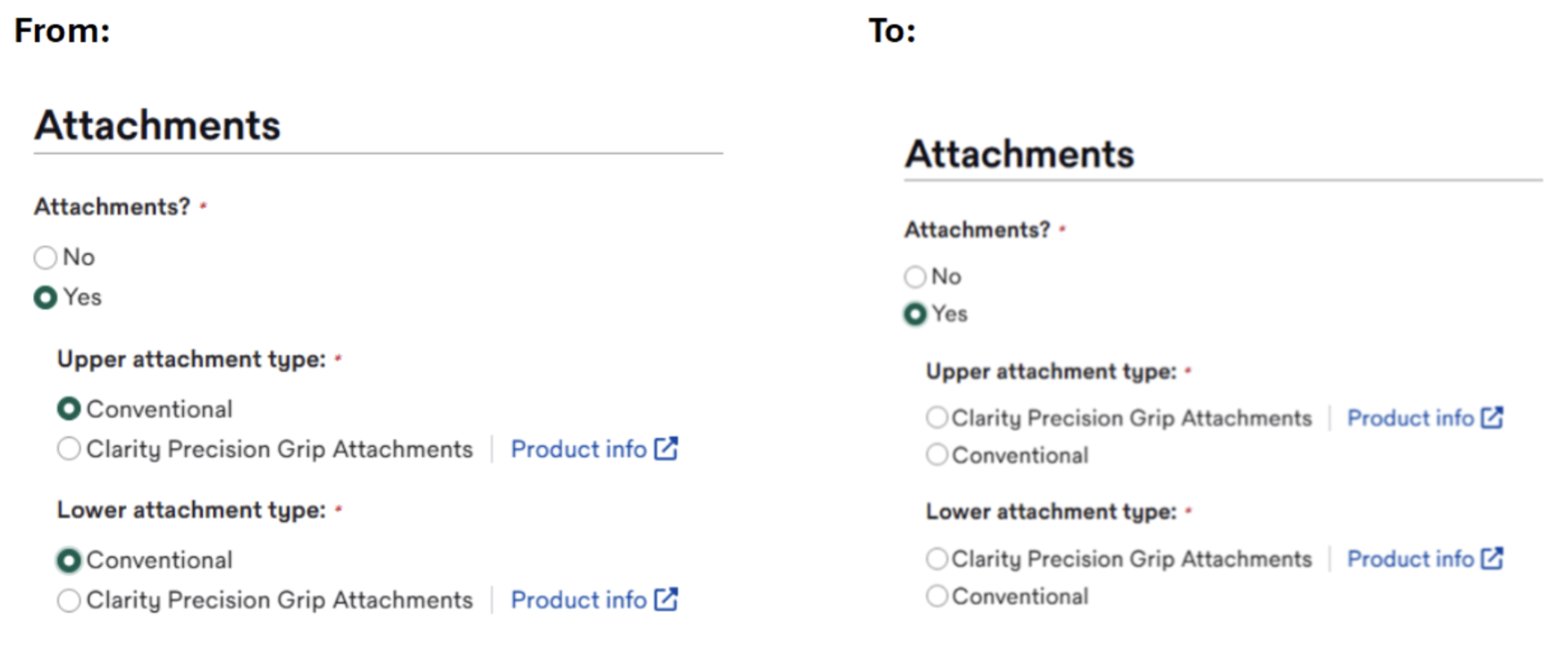 Previously, the upper and lower attachment type questions were pre-selected to “Conventional.” Now, we’ve removed that default—unless you’ve set a specific preference in your Rx Defaults. This gives you full control to choose what’s best for each patient, without assumptions.