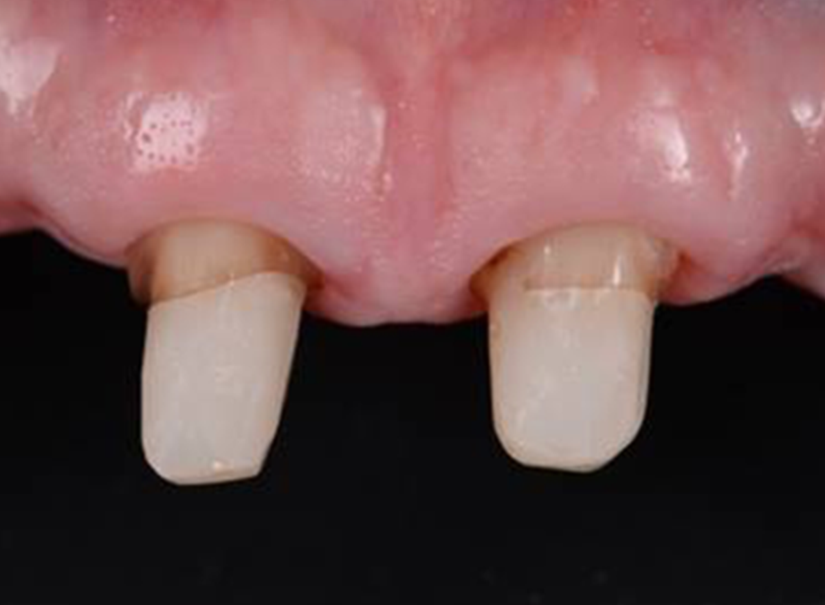 Image 1: The root canal is prepared using dedicated drills that fit the shape and size of the post. After cleaning and drying, the post is cemented using a self-adhesive resin cement (3M™ RelyX™ Unicem 2 Self-Adhesive Resin Cement) with a special endo-tip. After light-curing, a universal adhesive is applied (3M™ Scotchbond™ Universal Adhesive) and the core is built using a bulk-fill composite (3M™ Filtek™ One Bulk Fill Restorative).The final restoration was made of lithium-disilicate and could be bonded to the tooth using an adhesive resin cement (3M™ RelyX™ Ultimate Adhesive Resin Cement).