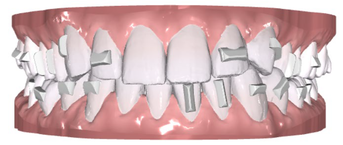 It has been recognized that clinical outcomes may be undermined by the correspondence between the digital representation and the physical article bonded to the teeth2,3. This lack of correspondence may be the result of voids, flash, or distortion of the attachment template. We have used Finite Element Analysis (FEA) simulations to show that both composite flash and displacement may have deleterious effects on the direction of applied force. Figure 4 reinforces the importance of accurately positioned and precisely shaped attachments.